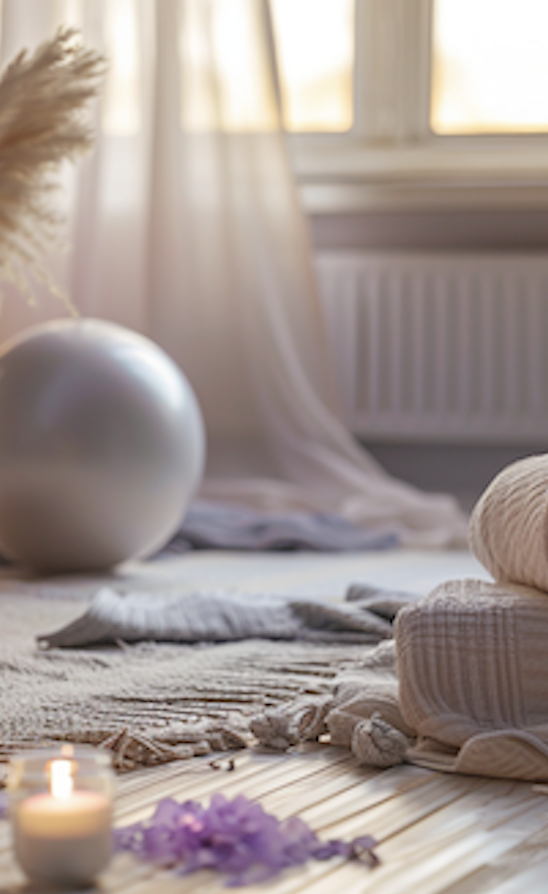 Sanne beviel thuis, in stilte en vertrouwen. Een verhaal over overgave, eenvoud en de kracht van rust in je eigen ruimte.